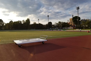 【富士森陸上競技場の夕方・・この後照明が入りそれも素敵な風景です】